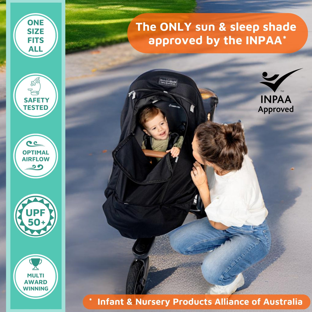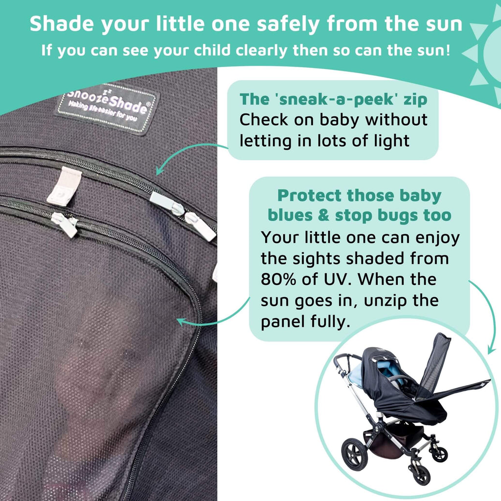 SnoozeShade Plus Extra - Universal Stroller Sun Shade - Blocks Up to 99% of UV